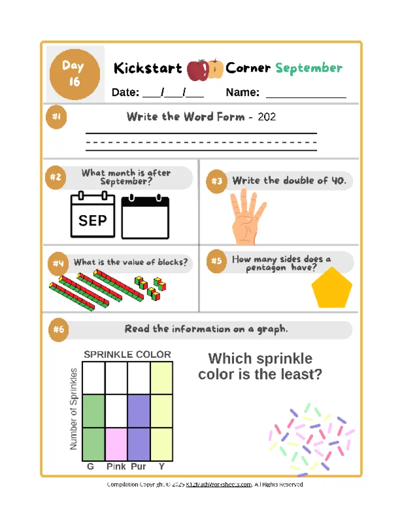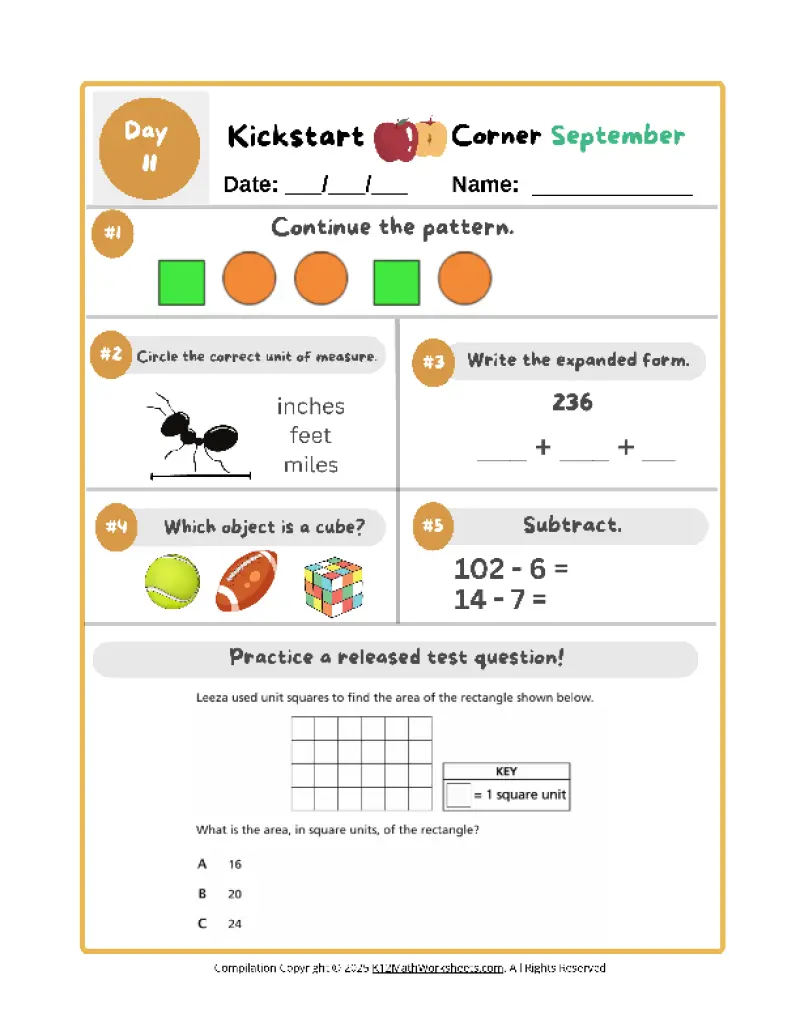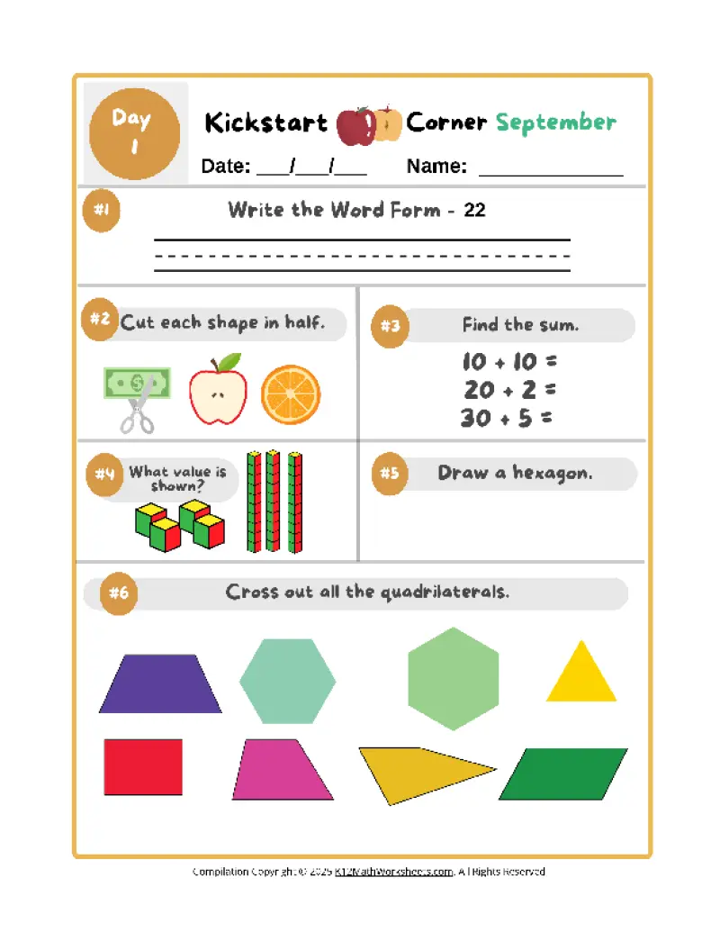 Get instant access to print and download Kickstart Corner worksheets, plus all K12 Math Worksheets!