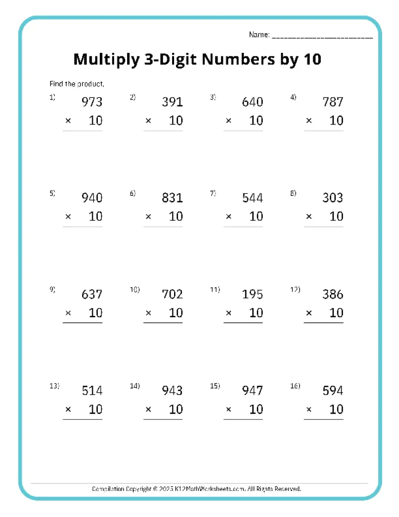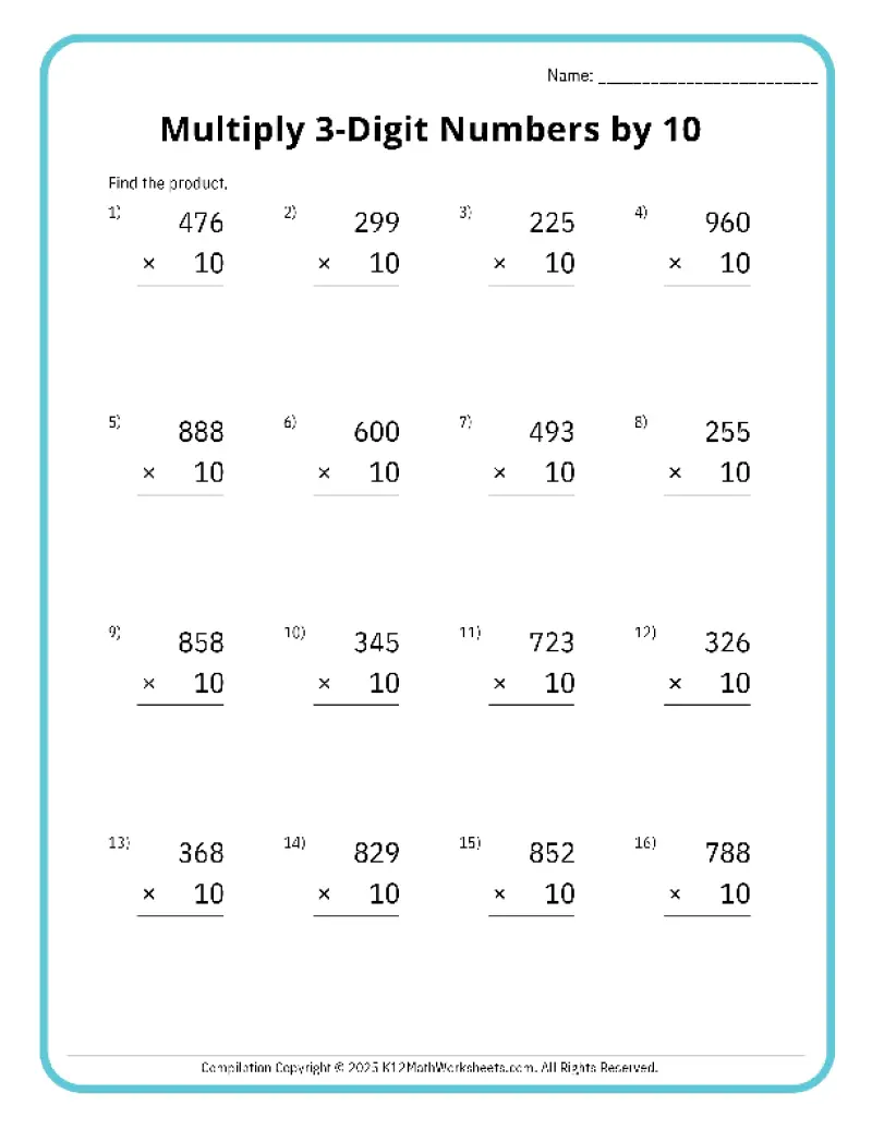 3-Digits by 10 Worksheet #1